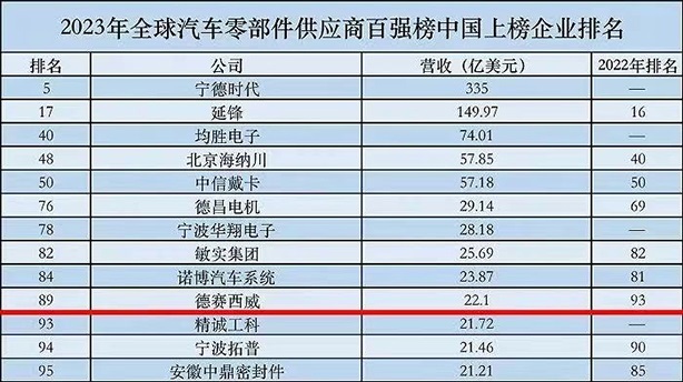 625šAutomotive News2023ȫ㲿Ӧ̰ǿ̫ǹΪȵƶпƼ˾λа89λȥ4λȽ̬